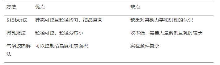 表4-8 二氧化硅包覆超顺磁性氧化铁纳米粒子制备方法的优缺点