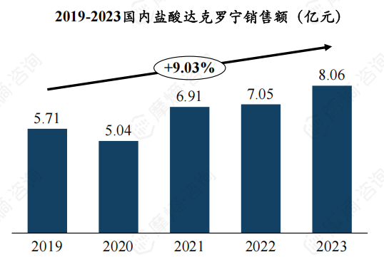 盐酸达克罗宁2023年销售额达8.06亿元,仅次于利多卡因。作为近几年局部麻醉药的新兴力量,2019至2023年复合增长率达到了9.03%。盐酸达克罗宁目前天仁药业与九泰药业已率先进入申请上市阶段,常州四药也已进入申请临床阶段。