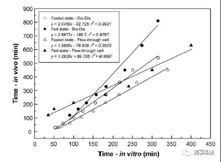 上述案例说明利用模拟体内介质+往复桶法以及流通池方法进行双氯芬酸钠缓释微丸的溶出考察时可实现较好的IVIVC方法,然对于这种化合物用桨法或者篮法来模拟体内过程都是很难实现的。值得注意的是:预测力方法的开发永远是case by case,因为该方法的建立不仅受介质开发和装置开发的限制还与药物本身的性质息息相关。
