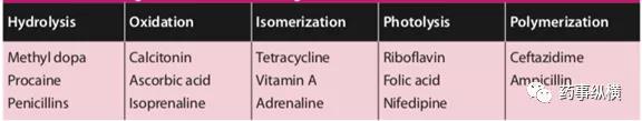 制剂中药物活性成分由于结构的特点,在某些环境条件下会发生降解,常见的降解方式有下面几种。