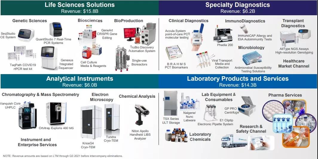 目前,赛默飞旗下品牌主要有ThermoScientific、Applied Biosystems、Invitrogen、Fisher Scientific、Unity Lab Services、Patheon,以及PPD。