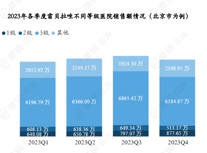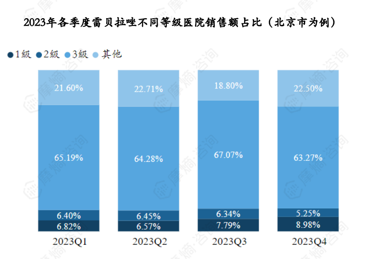2. 雷贝拉唑各级医院市场分析(以北京市为例)