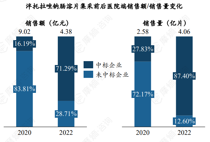 2. 肠溶片3家企业中选,销售额与销售量占比增长均超过50%