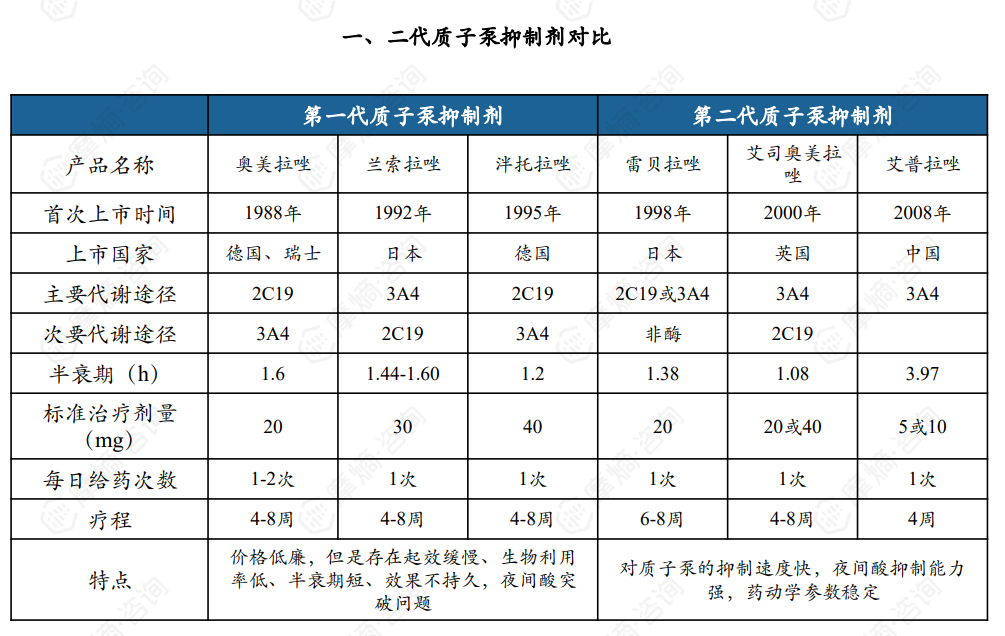 第二代质子泵抑制剂则在多方面改进了第一代的问题,表现出起效迅速的抑酸作用、高水平的抑酸能力、较低的不良反应率以及与其他药物间较小的相互作用,从而显著提升了治疗效果。