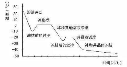 冷冻过程分为三个阶段,冷却阶段、相变阶段、凝固阶段。如下图所示: