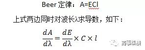 此法听起来似乎很玄乎,其实理解之后,也并不复杂,笔者曾经接触过这样的案例,如某片进口注册标准中的溶出度测定就是用的导数光谱法,其目的是利用导数光谱法消除片中的辅料干扰。导数光谱的定量原理:
