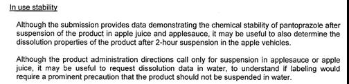 FDA泮托拉唑钠肠溶干混悬剂审评报告
