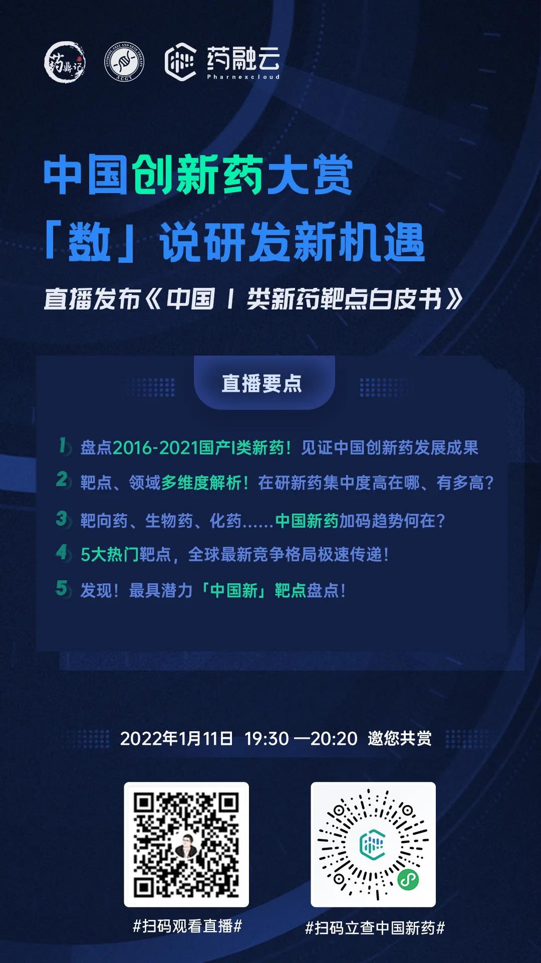 最终,将以上内容编纂成为《中国 I 类新药靶点白皮书》,于本周三开始提供免费下载。此外,我们还将于1月11日(本周二)19:30-20:20,在药鼎记直播间与大家分享白皮书,一睹为快,诚邀各位医药人前来聆听,共同探讨中国创新药新机遇!等不及的朋友,可不要错过!