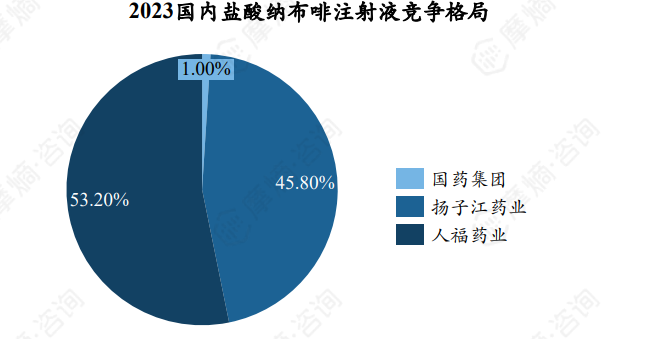 在国内市场,纳布啡最初由人福药业于2013年成功仿制,且在2021年3月通过了药品一致性评价。近年来,其市场销售额呈现出迅猛的增长态势,在2019年至2023年期间,年复合增长率高达33.20%,并于2023年实现了销售额超过10亿元的里程碑。2021年6月扬子江药业纳布啡上市以来,迅速抢占市场。至2023年,人福药业与扬子江药业在纳布啡市场的份额分别达到了53.20%和45.80%。