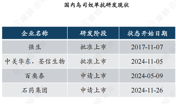 百奥泰生物、石药集团、迈博太科药业和甘李药业正在积极布局司库奇尤单抗生物类似药市场,已有三家企业进入Ⅲ期临床阶段。