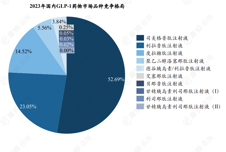 - 2023年国内GLP-1药物市场品种份额: