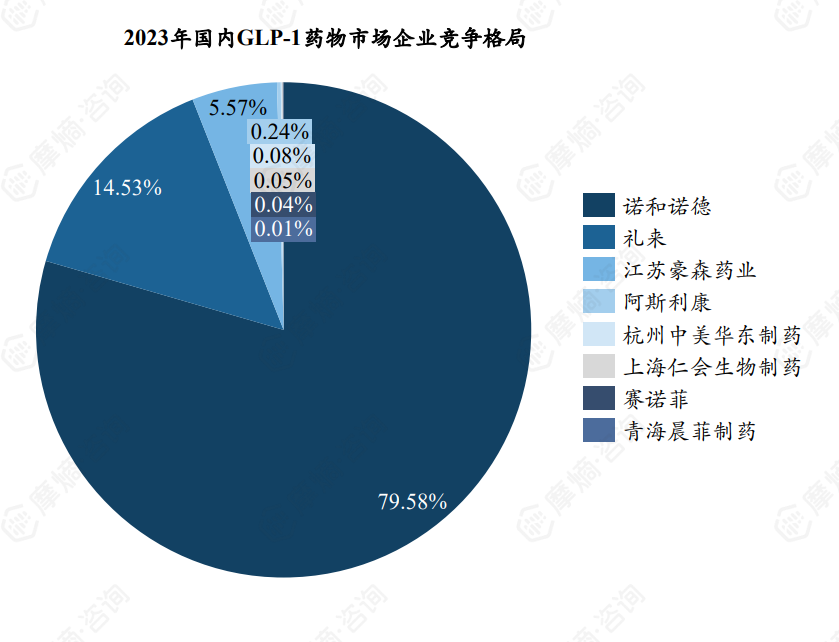 - 2023年国内GLP-1药物市场企业份额: