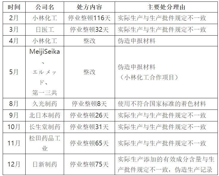 2021年日本制药行业以仿制药企业为主产生了一系列行政处罚,主要涉及方面包括生产过程与批准文书不一致,伪造生产记录及申报资料数据造假等。一系列丑闻波及了整个业界,导致同类替代药物出现市场供应失衡的乱象。根据日本仿制药协会的总结,2021年进行出货调整的品种在12月14日达到了2508种。目前,消除市场供应不平衡可能需要2 ~ 3年的时间,市场混乱未来将继续持续一段时间。