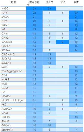 现代药物研发,源于靶点的选择,快速寻找到“中国新”靶点才是未来药物研发企业的发展趋势,,目前针对这些中国一类靶点白皮书总结了一些“中国新”靶点数据如图,药企可结合自身条件(方向、实力)等选择最优的靶点。