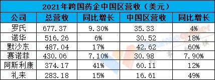 目前已有10多家跨国药企发布了21年财报,我们梳理下跨国药企在中国市场的营收情况。