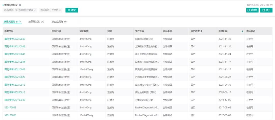 贝伐珠单抗注射液-药品批文信息