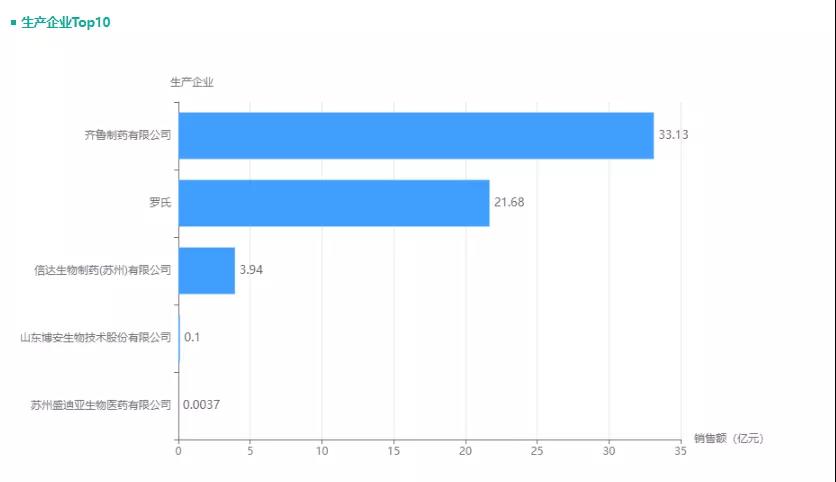 贝伐珠单抗注射液-2021年Q1-Q3销售数据企业排名
