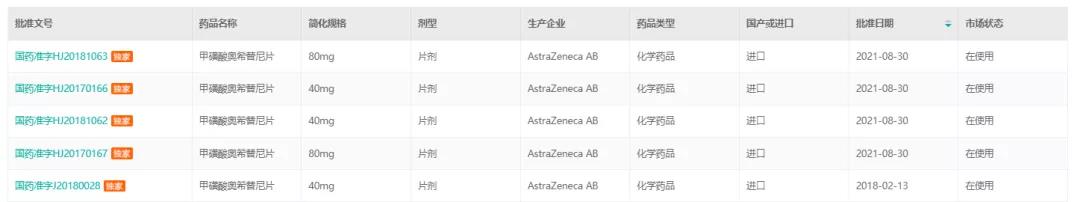 甲磺酸奥希替尼片-药品批文信息
