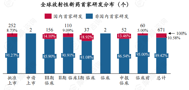1. 从研发数量来看,全球放射性新药研发热情高涨