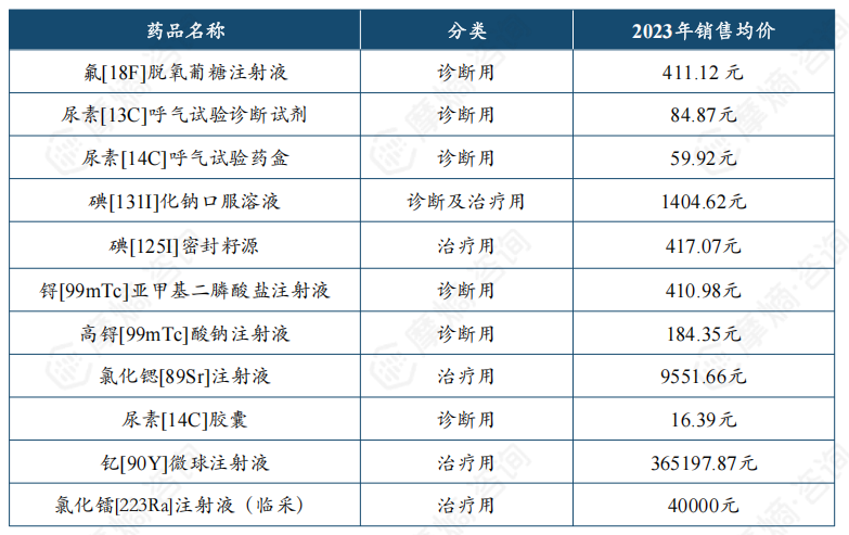 223Ra、90Y类上市的核药均为进口,此两类核药价格最高,13C类核药有一款产品也为进口药,其余类型的核药均为国产。