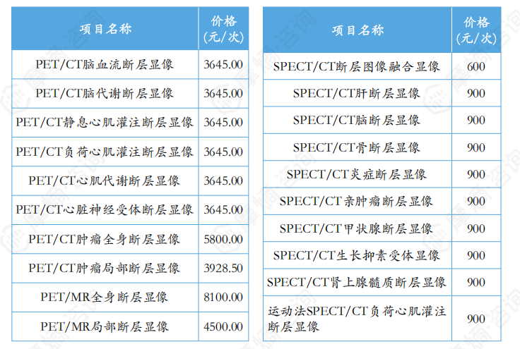 (4)我国核医学科室及人员配置不足,核医学设备装机量已在持续增加;PET检查费用高,仅少数地区纳入医保;核药价格较贵,将近一半产品纳入乙类医保