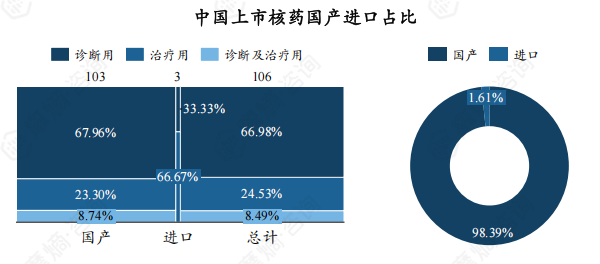 3. 产品:诊断类核药是全球核药研发和商业化的主流品类;国内市场有106个核药上市