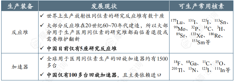 (1)80%以上的医用放射性核素来源于反应堆辐照,我国自主生产核素较少且多服务于科研任务,仅能满足少部分临床需求,因此医用同位素严重依赖进口