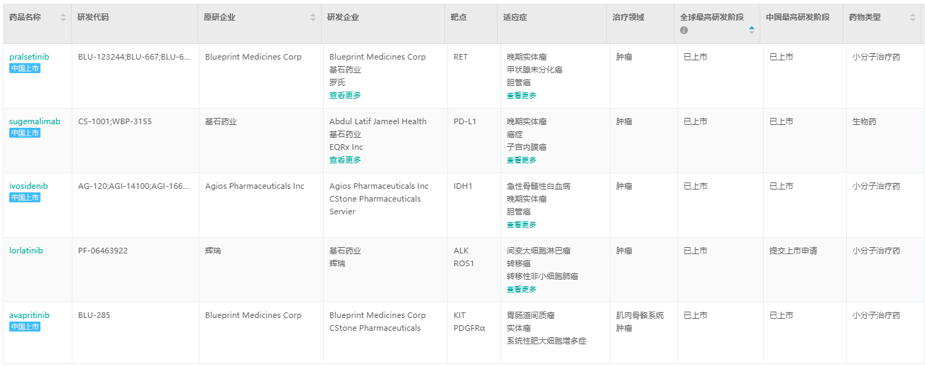 基石药业已上市产品