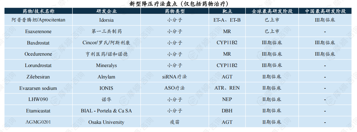 1. 未来新作用机制、新靶点降压药将逐渐涌入市场