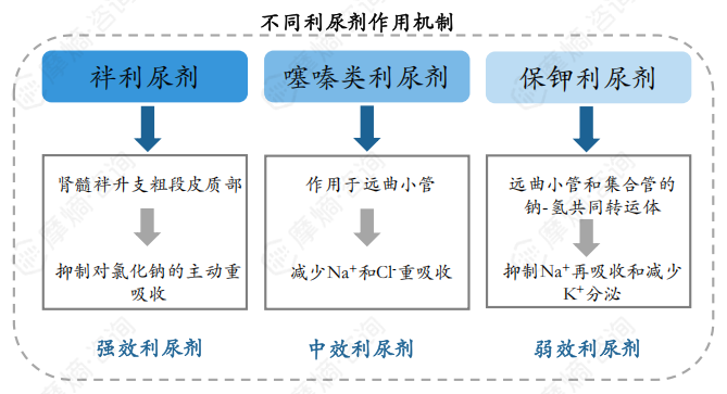 按照利尿效果的不同,利尿剂又可以分为强效、中效和弱效三大利尿剂。不同利尿剂的作用机制不同,具体来说: