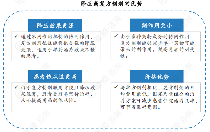 (3)患者依从性更高:由于复方制剂服用方便且降压效果显著,患者更容易坚持治疗,从而提高用药的依从性。