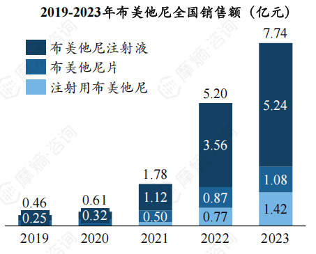 2019-2023年布美他尼系列产品销售额快速增长,2023年销售额突破7亿元。