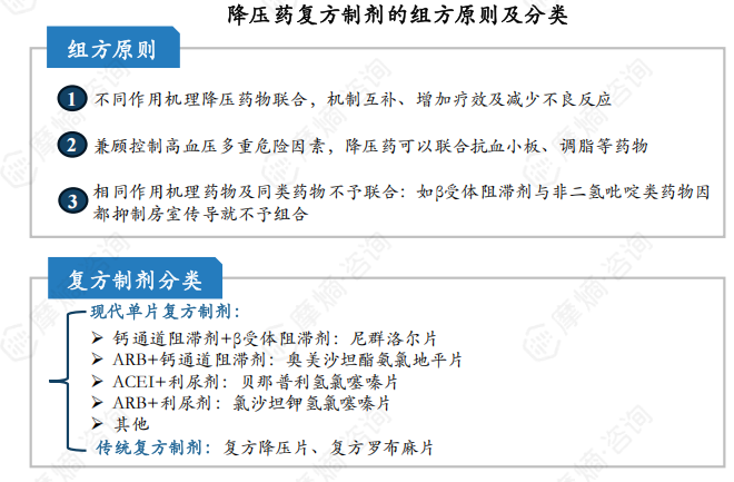 复方制剂主要分为现代单片复方制剂(如尼群洛尔片)和传统复方制剂(如复方降压片、复方罗布麻片)