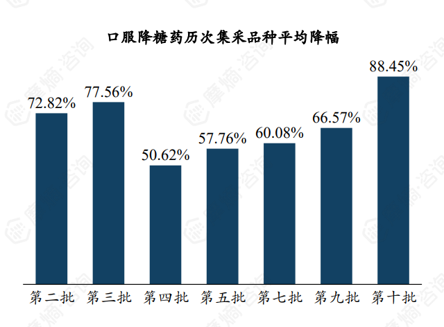 4. 集采全面覆盖七大类口服降糖药品种,第十批集采平均降幅高达88%