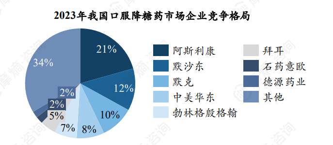 (2)我国口服降糖药市场仍由外资企业主导,阿斯利康份额领先