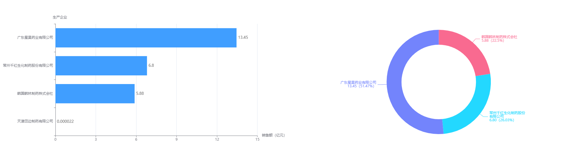 在生产企业方面,广东星昊药业的星昊美彤占了复方消化酶市场的半壁江山,累计共销售13.4亿元,占星昊医药营收的比例也较高。