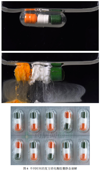 复方消化酶的处方组成:本品为复方制剂,每粒含胃蛋白酶25mg、木瓜酶50mg、淀粉酶15mg、熊去氧胆酸25mg、纤维素酶15mg、胰蛋白酶2550美国药典单位、胰淀粉酶2550美国药典单位、胰脂肪酶412美国药典单位。辅料为:淀粉、糊精、羟甲淀粉钠、硬脂酸镁、微晶纤维素、交联羟甲基纤维素钠、聚乙烯吡咯烷酮。其中胃蛋白酶能将蛋白质水解为蛋白胨,胰蛋白酶则可进一步将蛋白胨水解为短肽类等。胰淀粉酶和胰脂肪酶则具有消化淀粉和脂肪的作用。星昊美彤通过特殊的制剂工艺和“mutress-coat”包衣技术,能够精准定位释放有效成份,含有多种消化酶,并且可实现分段崩解和定位给药,防止不同种类的酶在胃肠道内相互干扰,以确保发挥最佳的酶活性。共包含橙色、白色薄膜衣片和绿色肠溶片。其中胃蛋白酶在胃溶型包衣片中(白的片或橙色片),胰蛋白酶、胰淀粉酶、胰脂肪酶在绿色肠溶片中。具体片剂和处方不再进行过多的剖析,下面讨论一下复方消化酶胶囊的填充。