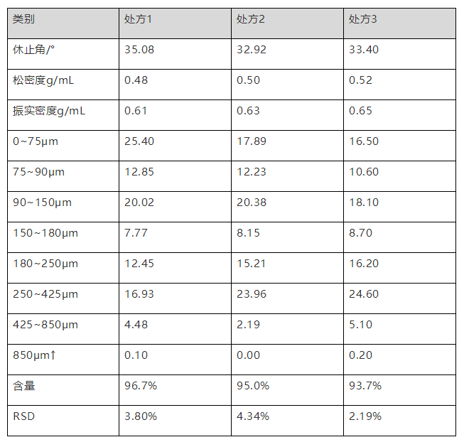 含量与产品的有效性息息相关[2],是产品性质的重要方面,而粉体学性质研究无疑是保障制剂含量以及其均匀性的必由之路。