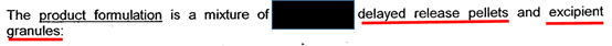 图1 FDA官网公布制剂由迟释微丸与辅料颗粒两部分组成