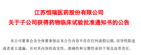 恒瑞医药2021年至今首次申报临床的1类新药