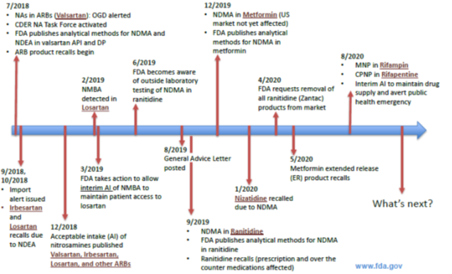 图1: 亚硝胺相关的事件和产品