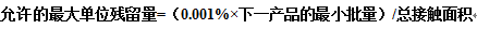 计算A的允许最大单位残留量:
