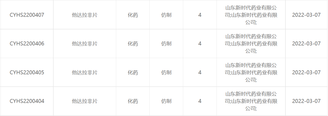 导读:近日,山东新时代药业有限公司提交的关于他达拉非片(注册分类:4类)的上市注册申请被CDE承办。