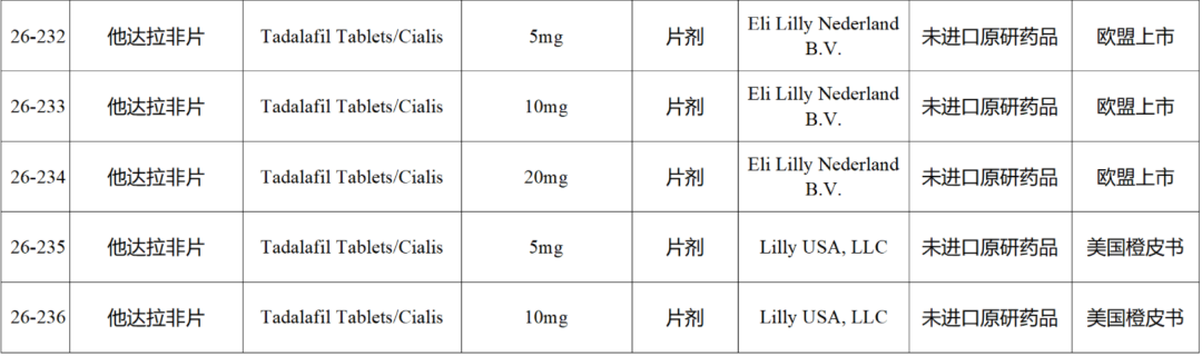 关于他达拉非的参比制剂可参见仿制药参比制剂目录(第八批)、(第十六批)、(第二十六批)、(第二十七批)、(第四十一批)。