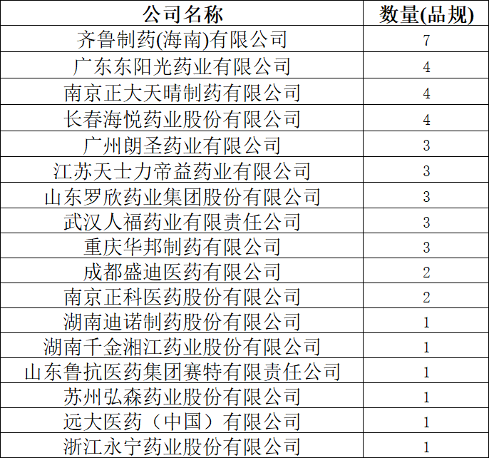 数据统计结果显示,齐鲁制药共有7品规他达拉非产品(包括3品规他达拉非口溶膜)上市,居榜首。广东东阳光、正大天晴、长春海悦均有4品规他达拉非产品上市。