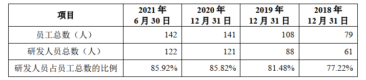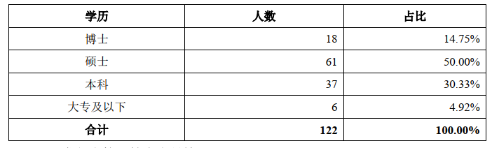 招股书签署日研发人员概况(目前有新增)