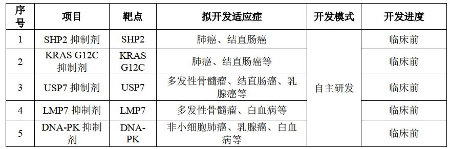 临床前候选新药pipeline(未包涵待披露靶点的3款)
