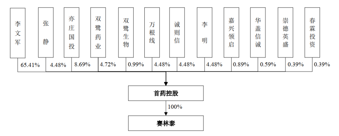 注:上市前股权结构显示,目前首药控股外部股东有上市公司双鹭医药、北京政府财政资金亦庄国投、中信建投资本、华盖资本、领承创投、崇德英盛等。上一轮投后估值超50亿元人民币。