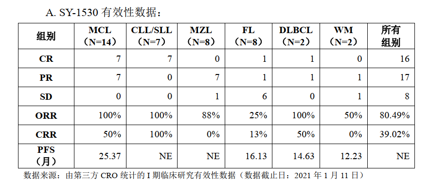截至2021年12月31日,SY-1530临床进展和公开披露的临床数据如下: