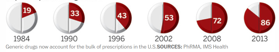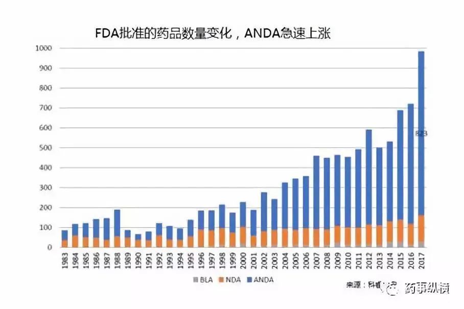 六十年代中期以后,创新药研发逐渐步入黄金时期,大量的新分子实体被开发上市,而这些产品在七十年代末八十年代初陆续失去了专利保护,在巨大的商业前景面前,很多资本家都开始按捺不住。然而1983年时,美国仅有35%的畅销药存在仿制药竞争,而且仿制药的市场份额仅有5%。而且就在同一年,Bolar公司因为提前研发罗氏的地西泮(专利1984年到期)而受到起诉,Bolar公司因被判侵权而成为时代的焦点。1984年秋,Hatch-Waxman法案终获得通过,FDA批准仿制药终有了法律依据,与此同时,反替代法在各州也被悉数废除,仿制药的全面替代终于铺平了道路。根据该法案,仿制药只需要提供简化新药申请(ANDA),通过生物等效性试验和文献数据来代替安全有效性试验,开发成本和周期大幅降低。与此同时,该法案还规定了“Bolar例外条款”,允许仿制药厂家在原研专利期内开展研发、申报和生物等效性试验,鼓励仿制药厂家挑战原研的专利,对首仿药给予180天的市场独占期。因为Waxman-Hatch法案,美国仿制药的巨大潜力瞬间被释放,FDA统计数据显示,1984年,美国有150个专利到期的品牌药没有仿制药,而就在第二年,FDA收到了1050项新仿制药申请。